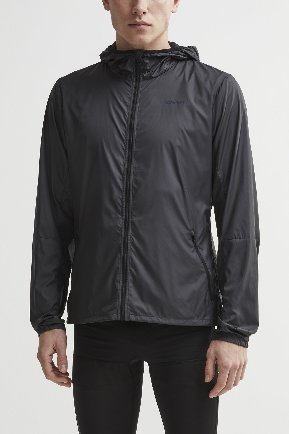 Мужская, куртка Craft Charge подходит для беговых тренировок средней и высокой интенсивности, фаз разминки и заминки, фитнеса, тренировок на свежем воздухе и других занятий в дождливую и ветреную погоду. Тонкие функциональные волокна перфорированы на спине, капюшоне и подмышками. Ваше тело не перегревается во время нагрузки.