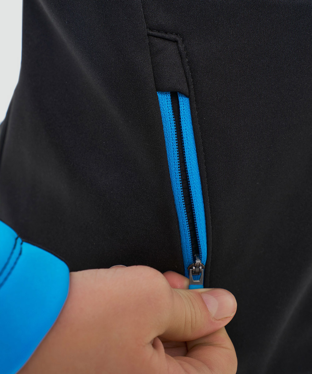 Конструктивные детали продуманы до мелочей: молния оснащена защитой подбородка и ветрозащитной планкой, а два боковых кармана на молнии позволяют безопасно хранить необходимые мелочи. Анатомический крой рукава обеспечивает естественную свободу движений, а эластичные вставки из влагоотводящего термобифлекса способствуют эффективной вентиляции и быстрому отводу влаги.