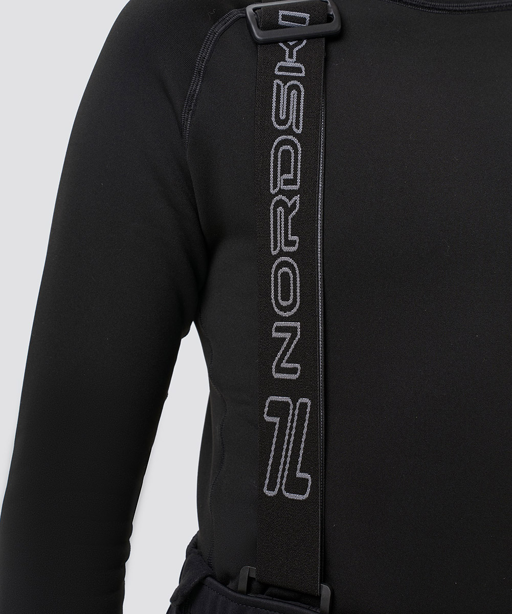 Комфорт посадки гарантирует эластичный пояс со шнурком, а регулируемые съёмные бретели позволяют надёжно зафиксировать брюки и адаптировать их под индивидуальные особенности. Анатомический крой в области коленей обеспечивает свободу движений, а светоотражающие элементы повышают безопасность в условиях недостаточной освещённости.