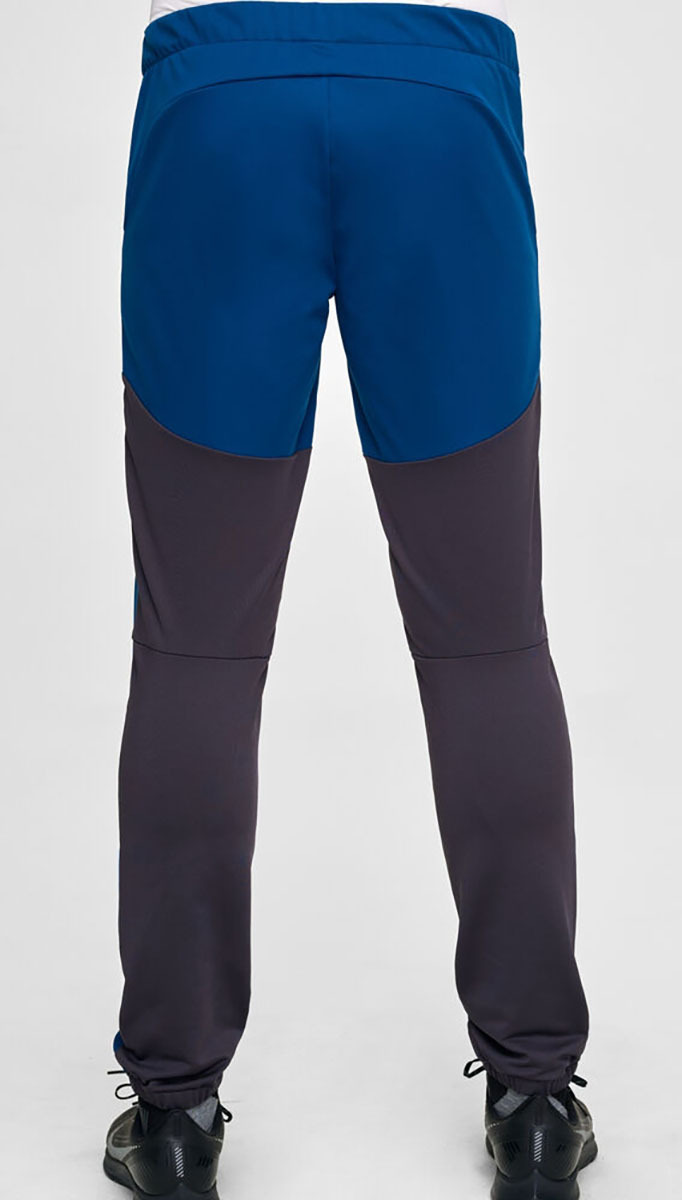 В комплект входят брюки Bjorn Daehlie Kikut. От более дорогой модели Motivation отличаются более анатомичным кроем (сидят плотнее) и более тёплой задней частью. Спереди здесь также мембрана - непродуваемый и непромокаемый материал, который надёжно защитит от ветра и осадков, но в отличии от Motivation мембрана заходит ещё назад и закрывает, посяницу, попу и заднюю поверхность бедра. А тёплая лайкра здесь получается идёт только сзади снизу (от низа брючины до середины бедра), она сделана как трикотажная ткань, более качественно чем на российских брендах, по теплу примерно то же самое, что лайкра с микрофлисом. Благодаря этому ноги сзади в тепле.