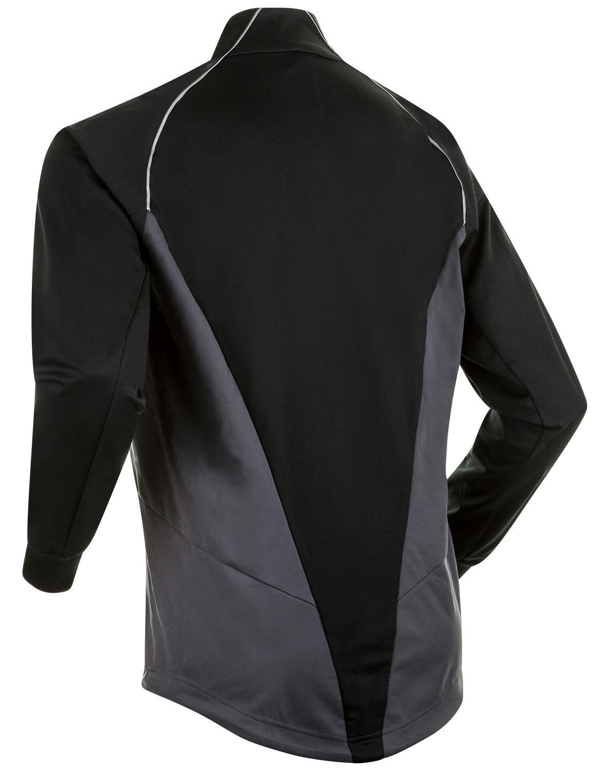 В комплекте идёт куртка Ridge - спереди у неё софтшелл c мембраной - непродуваемый и непромокаемый материал, который надёжно защитит от ветра и осадков. Причём мембрана не только спереди, но ещё плечи, рукава и заходит ещё на половину спины в нижней части (всё что серое сзади на фото + плечи). Благодаря этому куртка ощутимо теплее чем кажется. Сзади тёплая лайкра, она сделана как трикотажная ткань, более качественно чем на российских брендах, по теплу совсем чуть-чуть тоньше чем лайкра с микрофлисом. Благодаря этому спина сзади в тепле. Спереди утепление прессованный софтшелл, тонкий утеплитель наподобие элитных курток Noname, One Way и Odlo.
