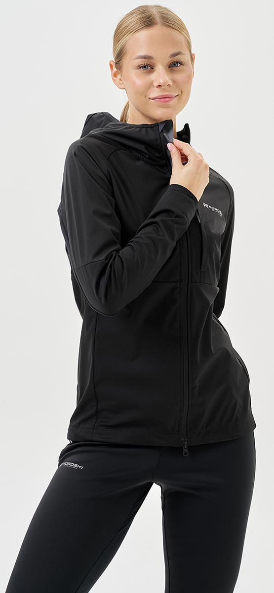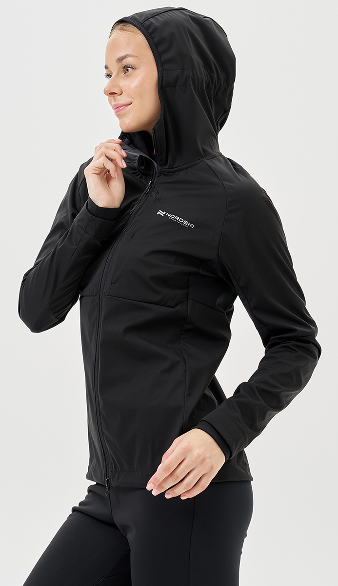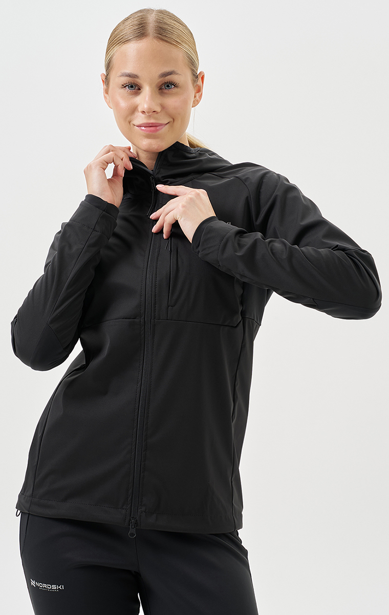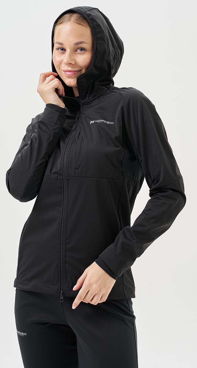 Тренировочная куртка Nordski PRO TOUR HOOD W предназначена для спортсменов, занимающихся бегом, беговыми лыжами, туринг‑ и ски‑туром. Модель создана для интенсивных тренировок в любую погоду: лёгкий трёхслойный софтшелл с мембраной и эластичными вставками обеспечивает надёжную защиту, комфорт и полную свободу движений.