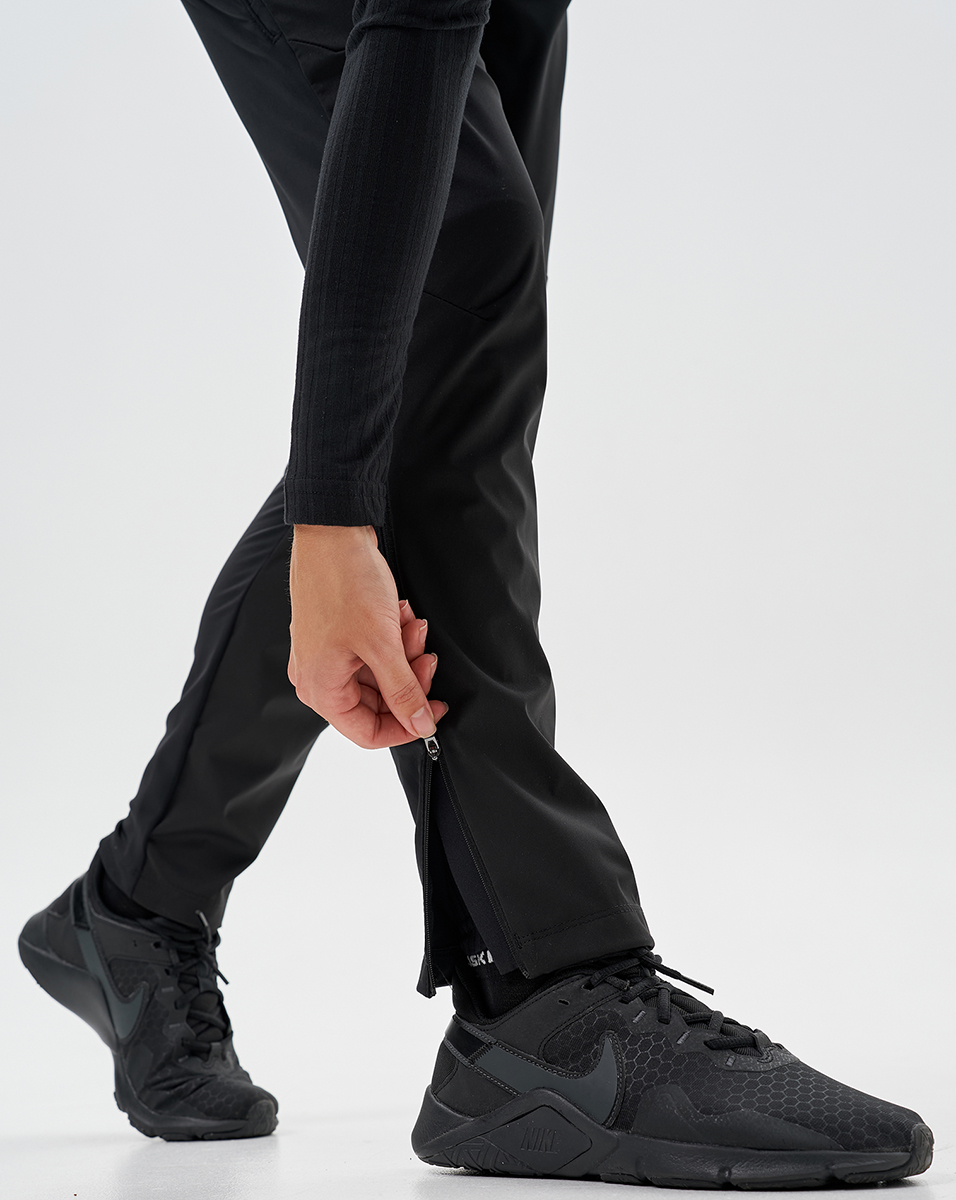 Анатомический крой повторяет естественные движения тела, гарантируя полную свободу и комфорт во время тренировки. Пояс на резинке с утягивающим шнурком позволяет настроить посадку по фигуре. Для удобства переодевания предусмотрены боковые молнии до уровня колен. Дополнительная вентиляция реализована через специальные молнии на бёдрах — они помогают регулировать микроклимат и эффективнее отводить влагу.