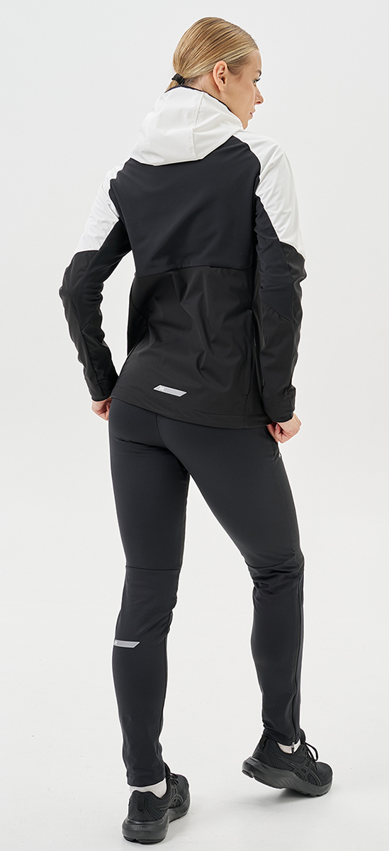 Куртка оснащена водоотталкивающей пропиткой, которая эффективно защищает от ветра и лёгких осадков. Прилегающий силуэт и анатомический крой гарантируют точную посадку и не сковывают движения. Конструкция включает молнию с защитой подбородка и ветрозащитной планкой, воротник‑стойку и втачной рукав. Для улучшения отвода влаги и удобства посадки предусмотрены специальные эластичные вставки в области подмышек, на рукавах и на спине.