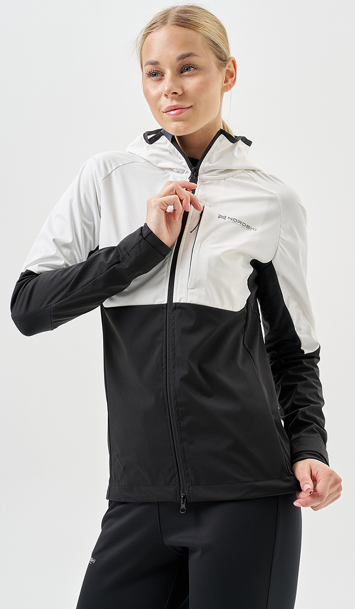 Тренировочная куртка Nordski PRO TOUR HOOD W предназначена для спортсменов, занимающихся бегом, беговыми лыжами, туринг‑ и ски‑туром. Модель создана для интенсивных тренировок в любую погоду: лёгкий трёхслойный софтшелл с мембраной и эластичными вставками обеспечивает надёжную защиту, комфорт и полную свободу движений.
