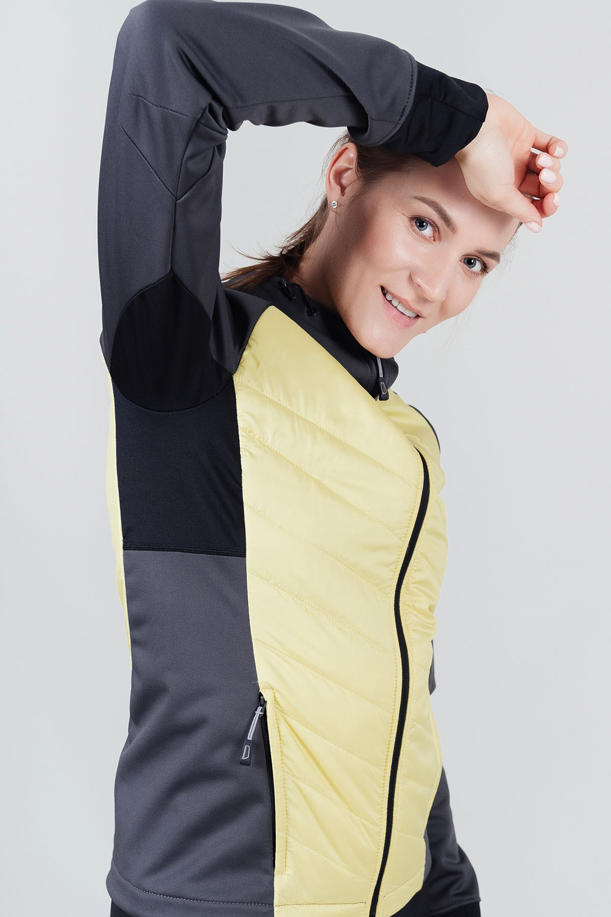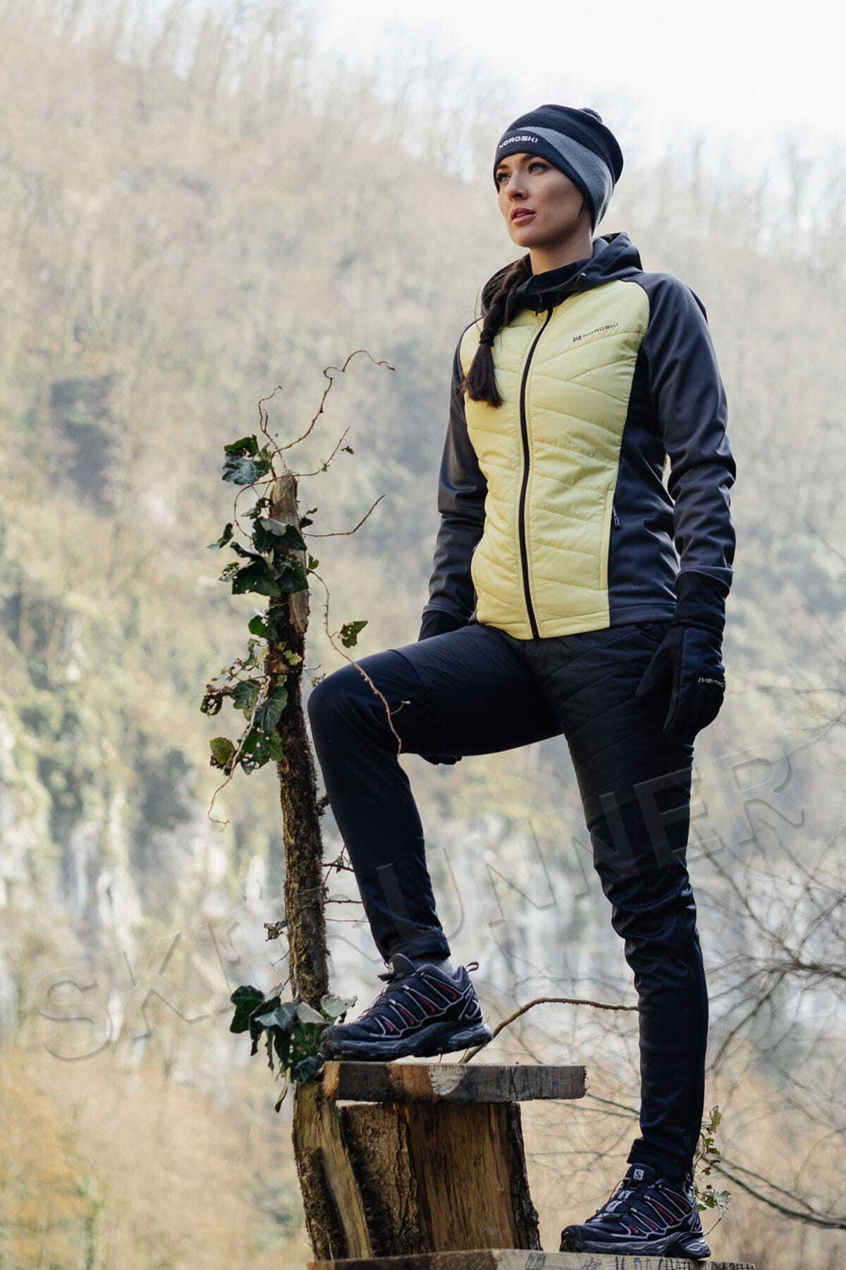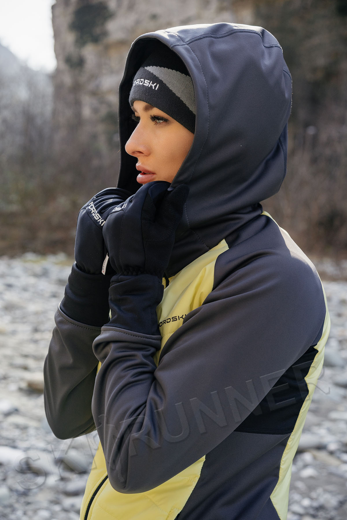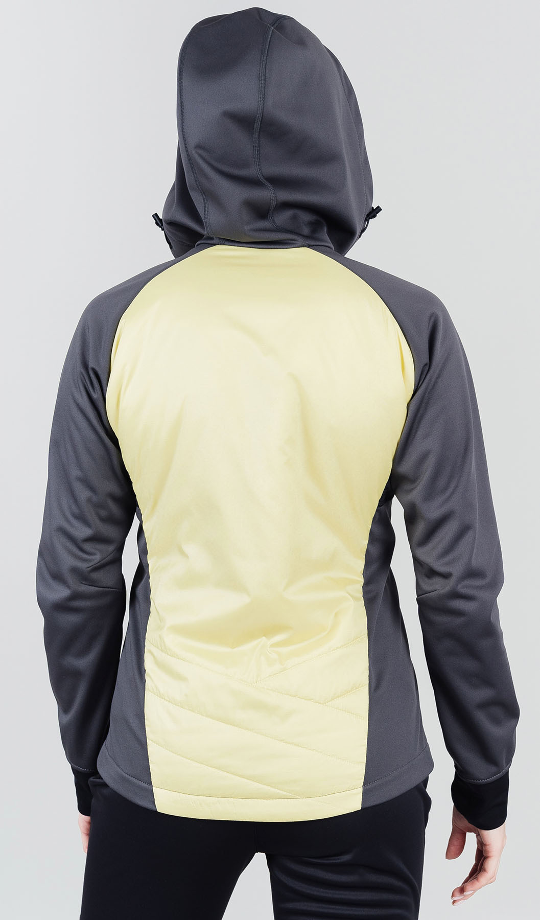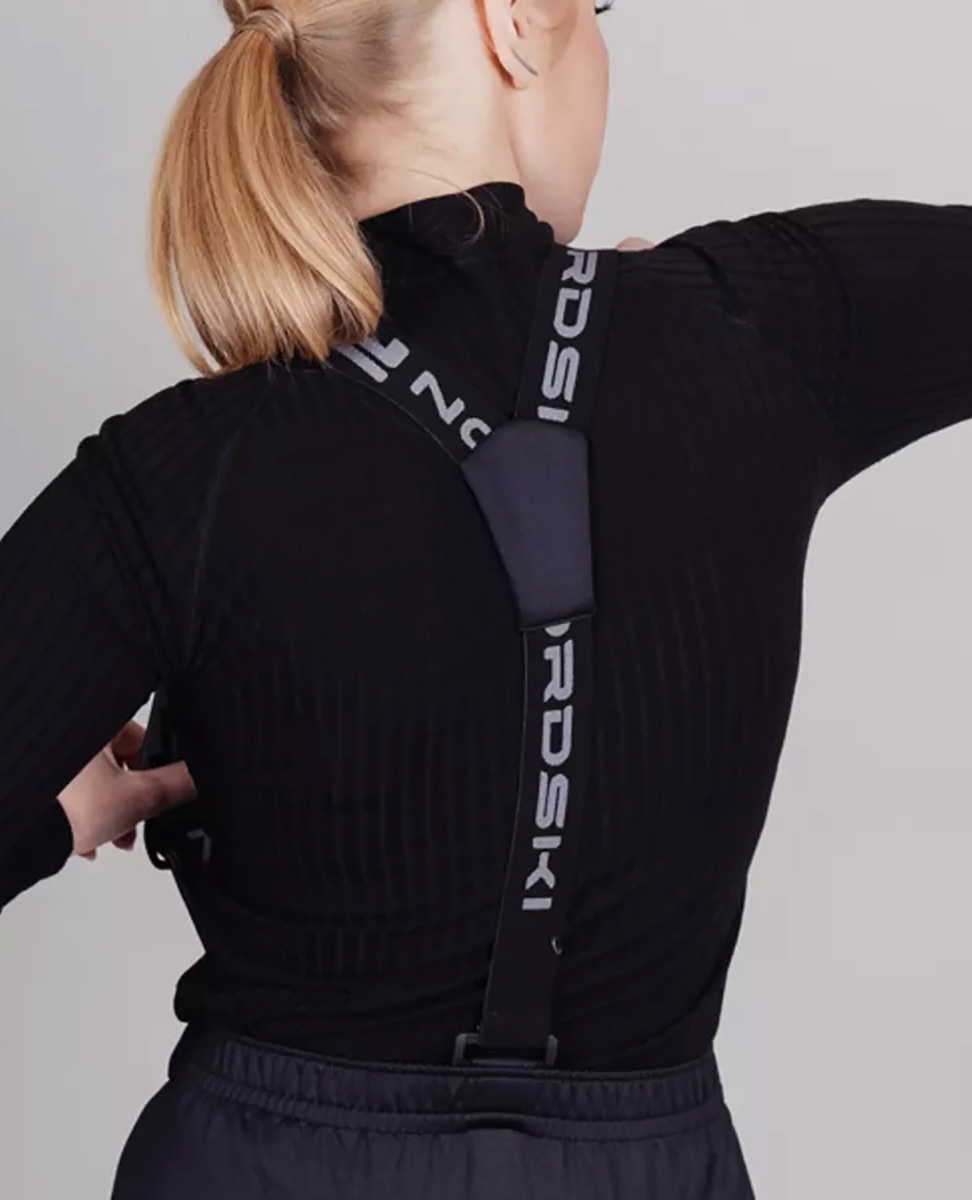Премиальный костюм для лыж и зимнего бега Nordski Hybrid Hood Premium Black/Yellow женский с лямками предназначен для: