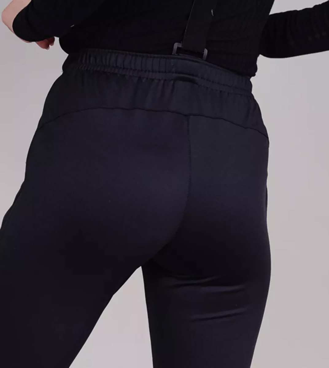 Брюки анатомического кроя, под низ легко можно одеть термобельё. В комплекте идут лямки, их можно отстегнуть или отрегулировать по длине. Молния по бокам полная - самосбросы, позволяет снять брюки через лыжи или обувь перед стартом, но при этом не мешает тем, кто этим не пользуется, поскольку она закрыта внутри отдельным слоем материала.