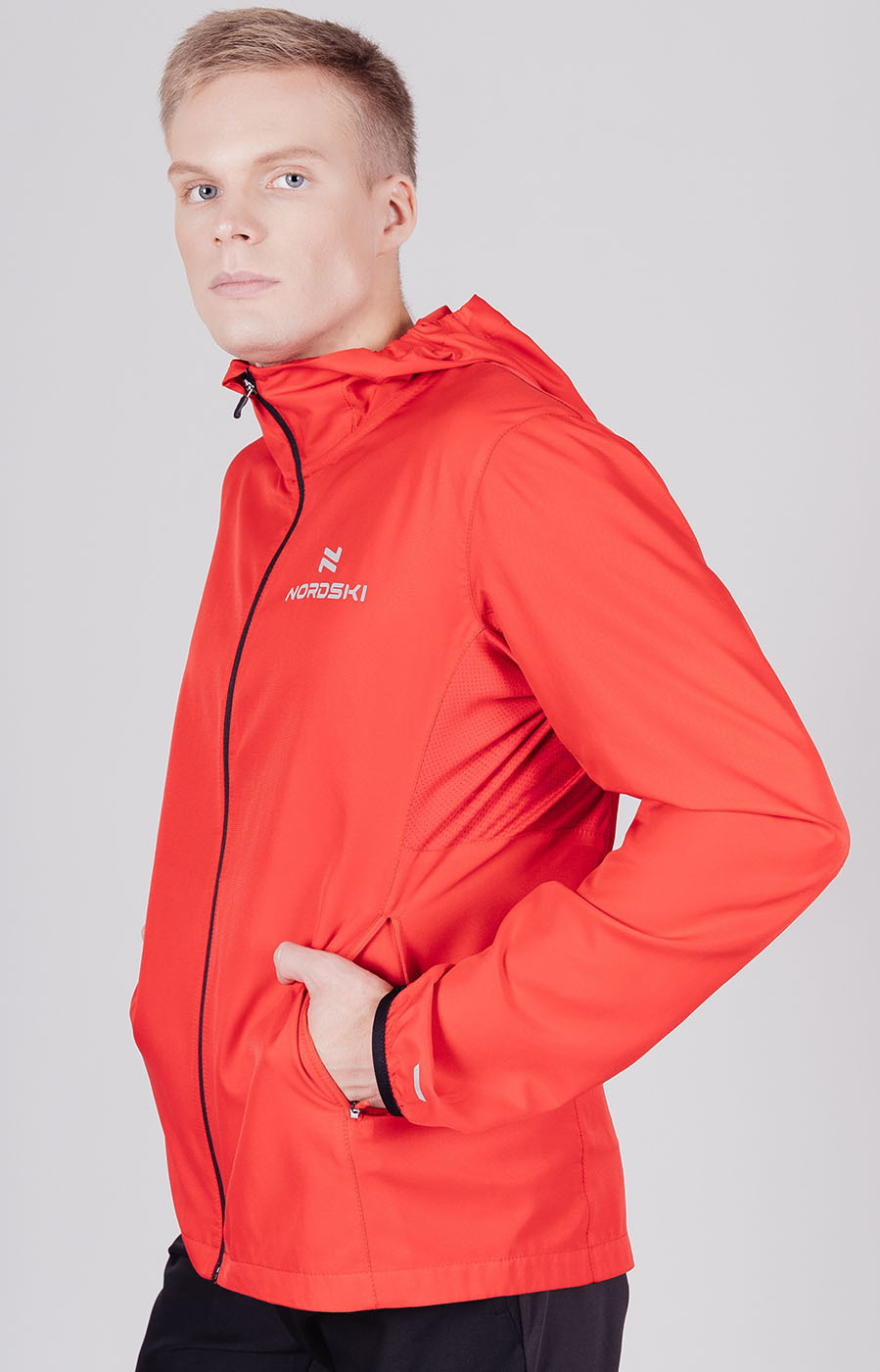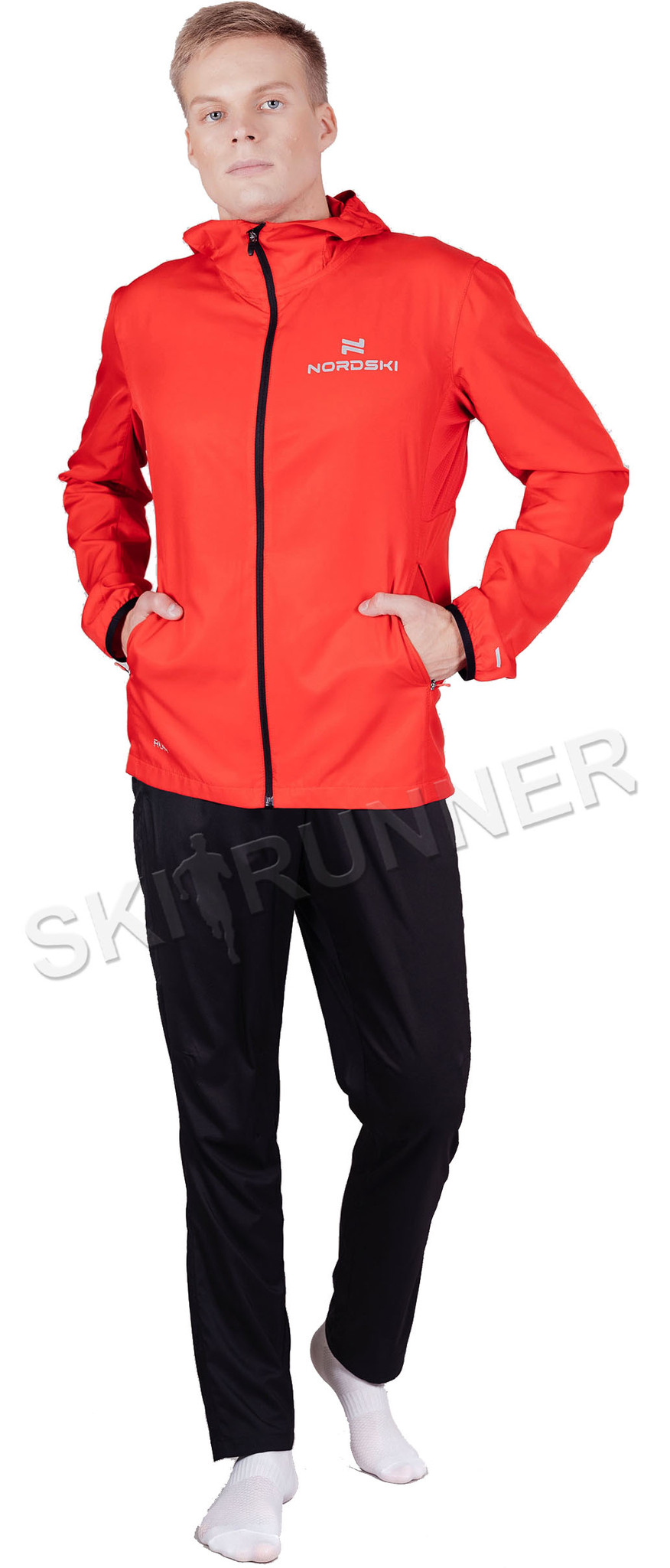 Беговой ветрозащитный костюм с капюшоном Nordski Run Light Red 2022 с прямыми брюками подойдет для: