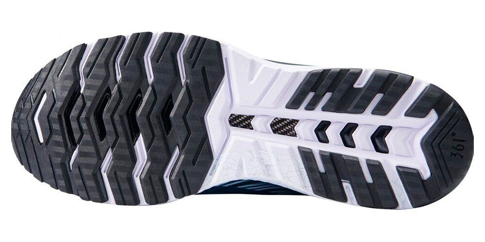Подошва при приземлении полностью соприкасается с поверхностью для лучшего сцепления и ускорения, а канавки гибкости на ней расположены так, чтобы поддерживать естественное движение стоп.