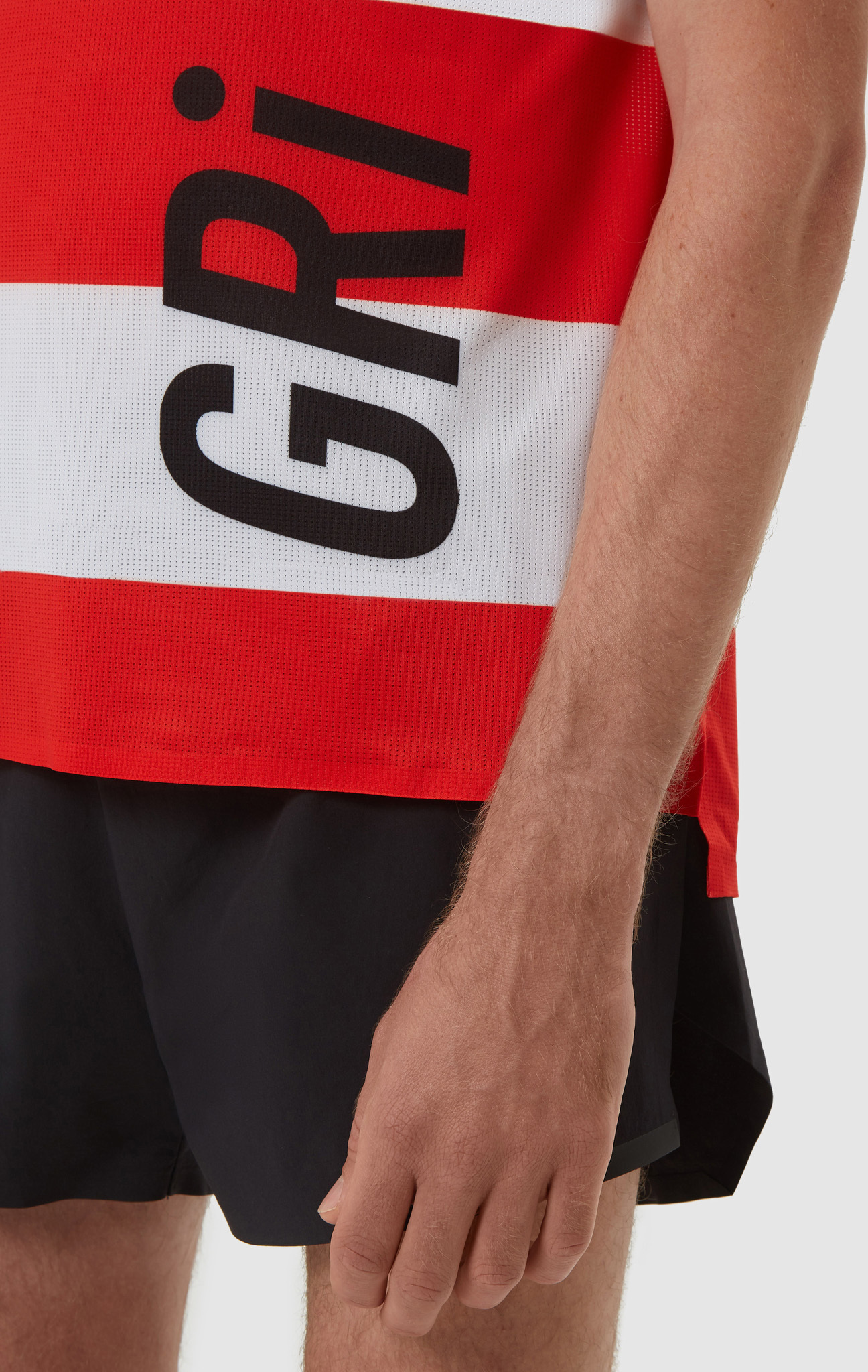Третья версия самой популярной модели маек. На переднюю часть майки вернулся крупный логотип GRI, на спину, добавили светоотражающий логотип с координатами маяков эстафеты 2021 года.