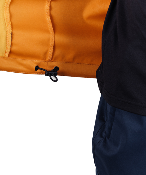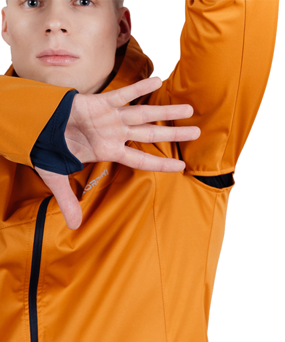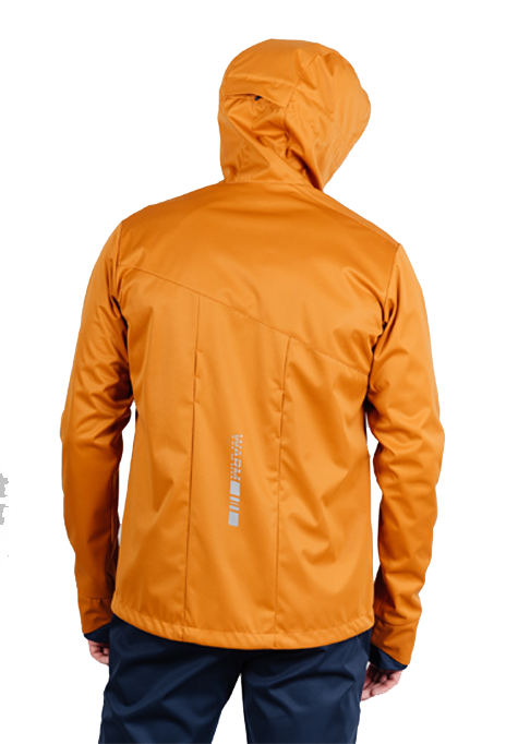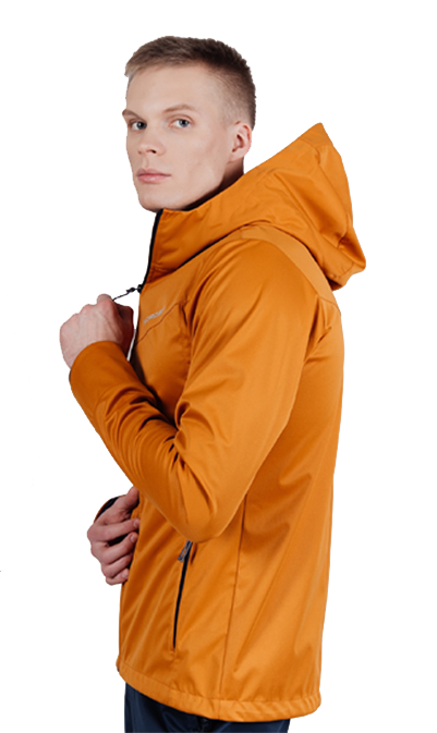 Ветрозащитный костюм с капюшоном и мощной мембраной эффективно защищает от дождя, ветра или мокрого снега. Модель имеет полуприлегающий силуэт. В верху куртки имеется большой, практичный капюшон с регулировкой. Два вместительных боковых кармана на молнии.