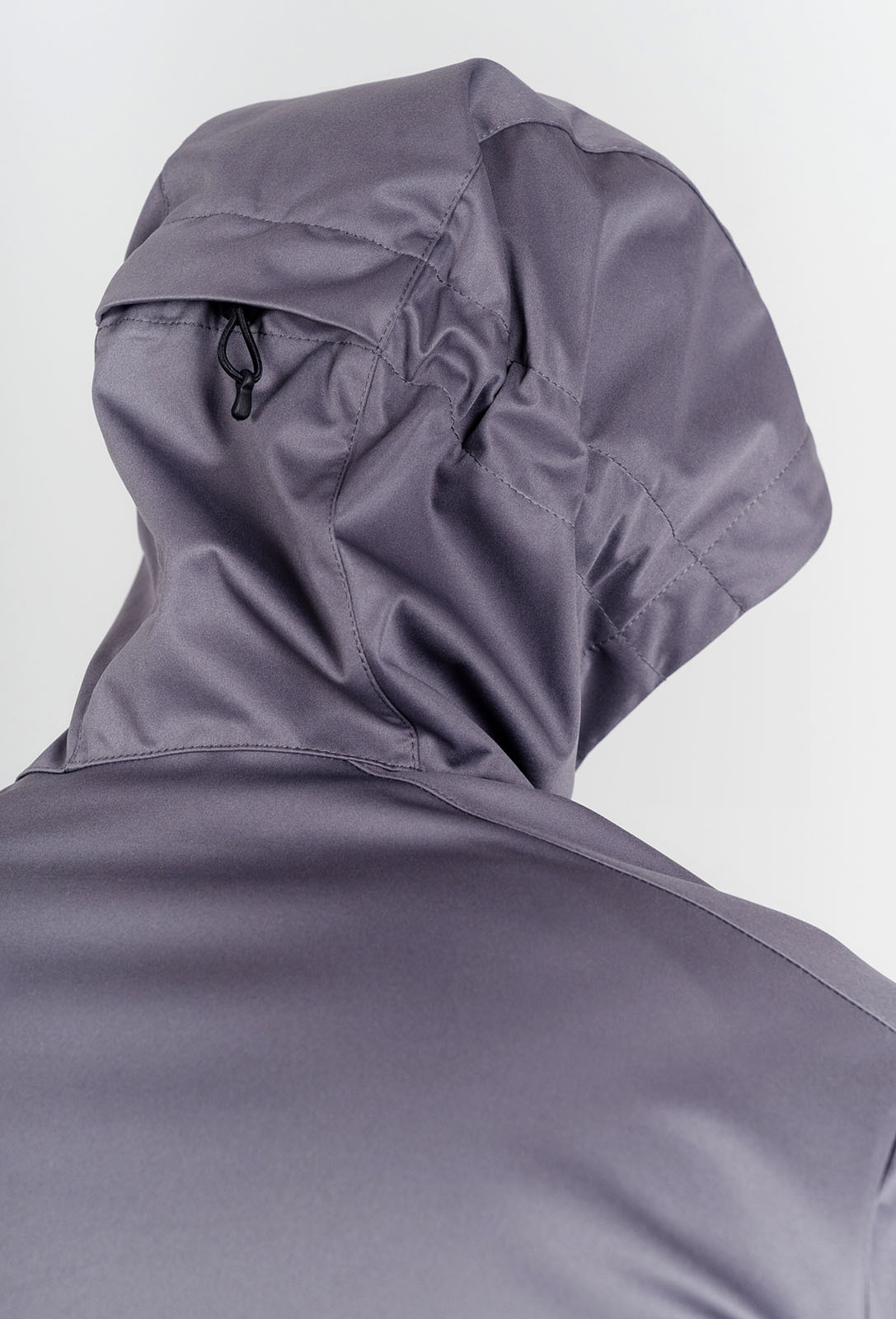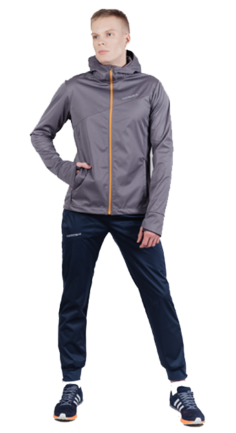 Ветрозащитный костюм с капюшоном и мощной мембраной эффективно защищает от дождя, ветра или мокрого снега. Модель имеет полуприлегающий силуэт. В верху куртки имеется большой, практичный капюшон с регулировкой. Два вместительных боковых кармана на молнии.