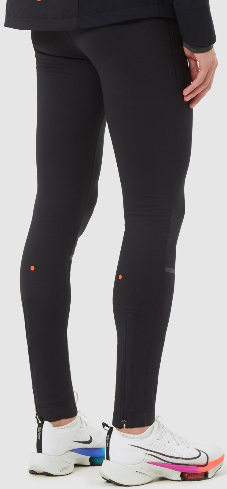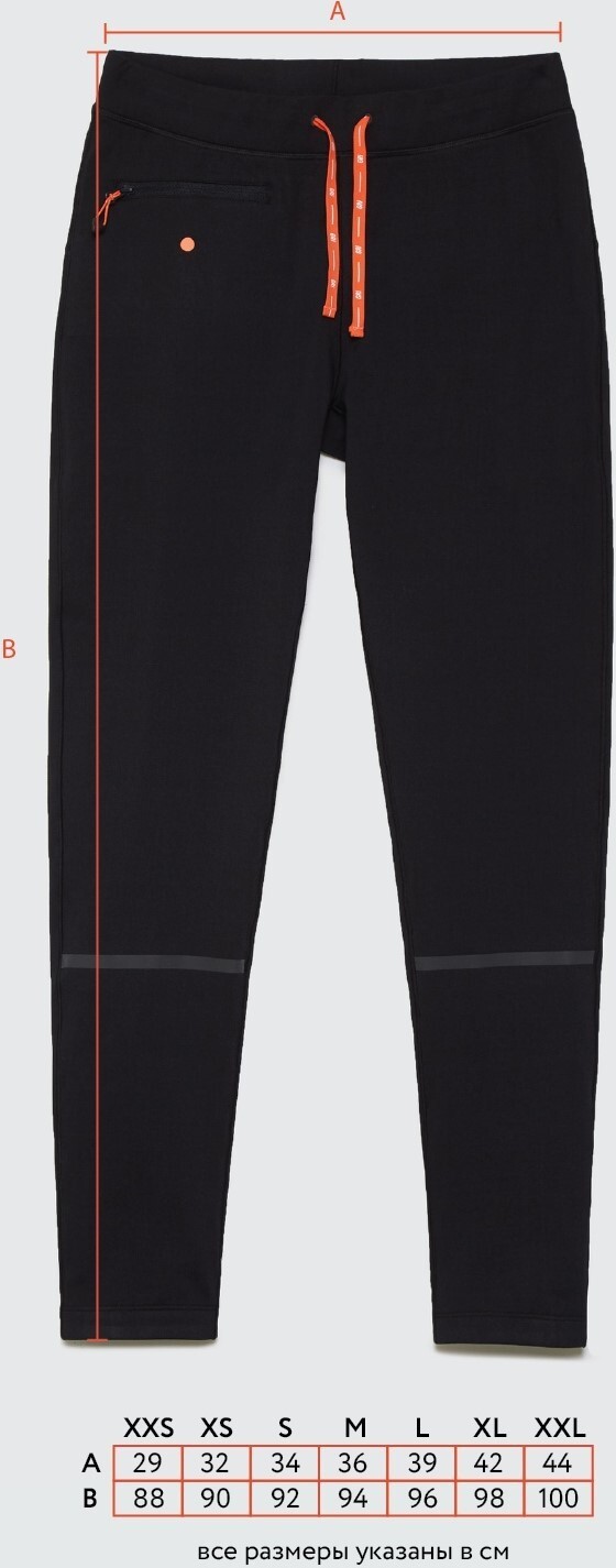 Снизу до колена молнии, чтобы термотайтсы было удобно снимать и надевать, на лодыжках — силиконовая полоска для фиксации. Пояс регулируется шнурком. Сзади — большой карман на молнии для телефона или других предметов, спереди — небольшой карман для ключей. А светоотражающие элементы сделают ваши тренировки безопасными в темное время суток.