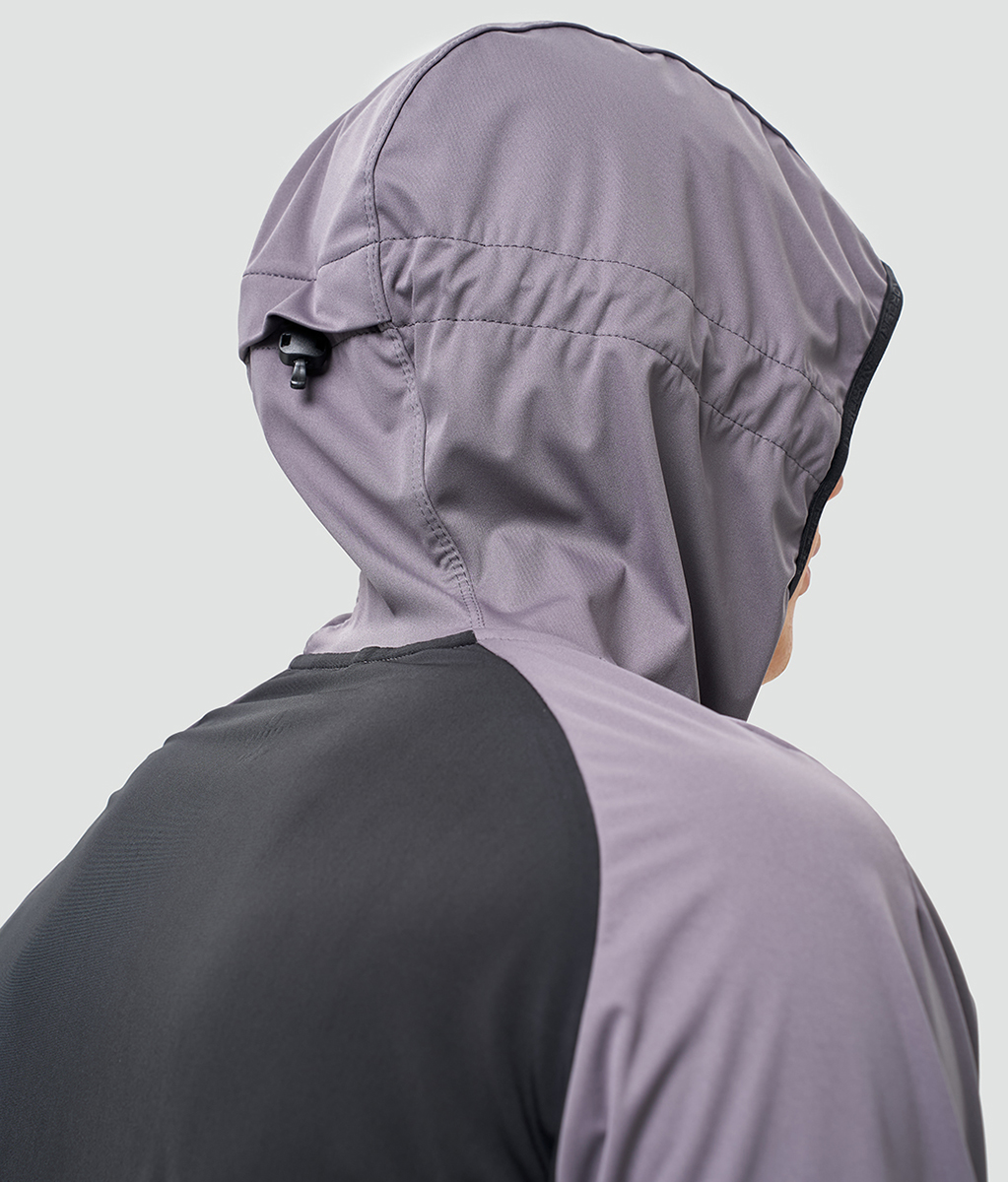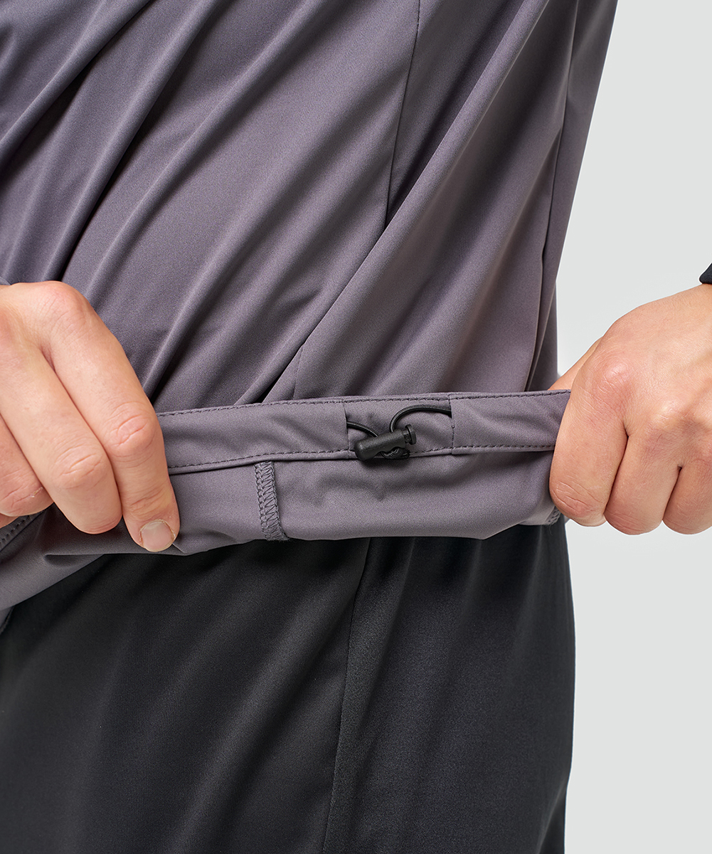 Куртка оснащена водоотталкивающей пропиткой, которая эффективно защищает от ветра и лёгких осадков. Прилегающий силуэт и анатомический крой гарантируют точную посадку и не сковывают движения. Конструкция включает молнию с защитой подбородка и ветрозащитной планкой, воротник‑стойку и втачной рукав. Для улучшения отвода влаги и удобства посадки предусмотрены специальные эластичные вставки в области подмышек, на рукавах и на спине.