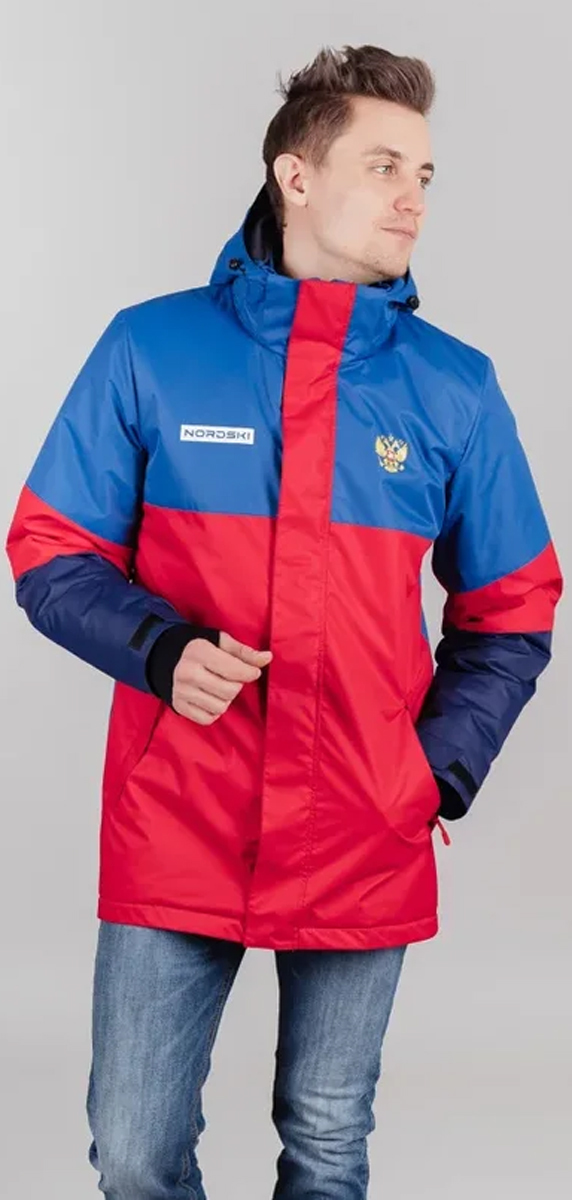 Удлиненная прогулочная куртка Nordski Casual True Blue/Red мужская подойдет для: