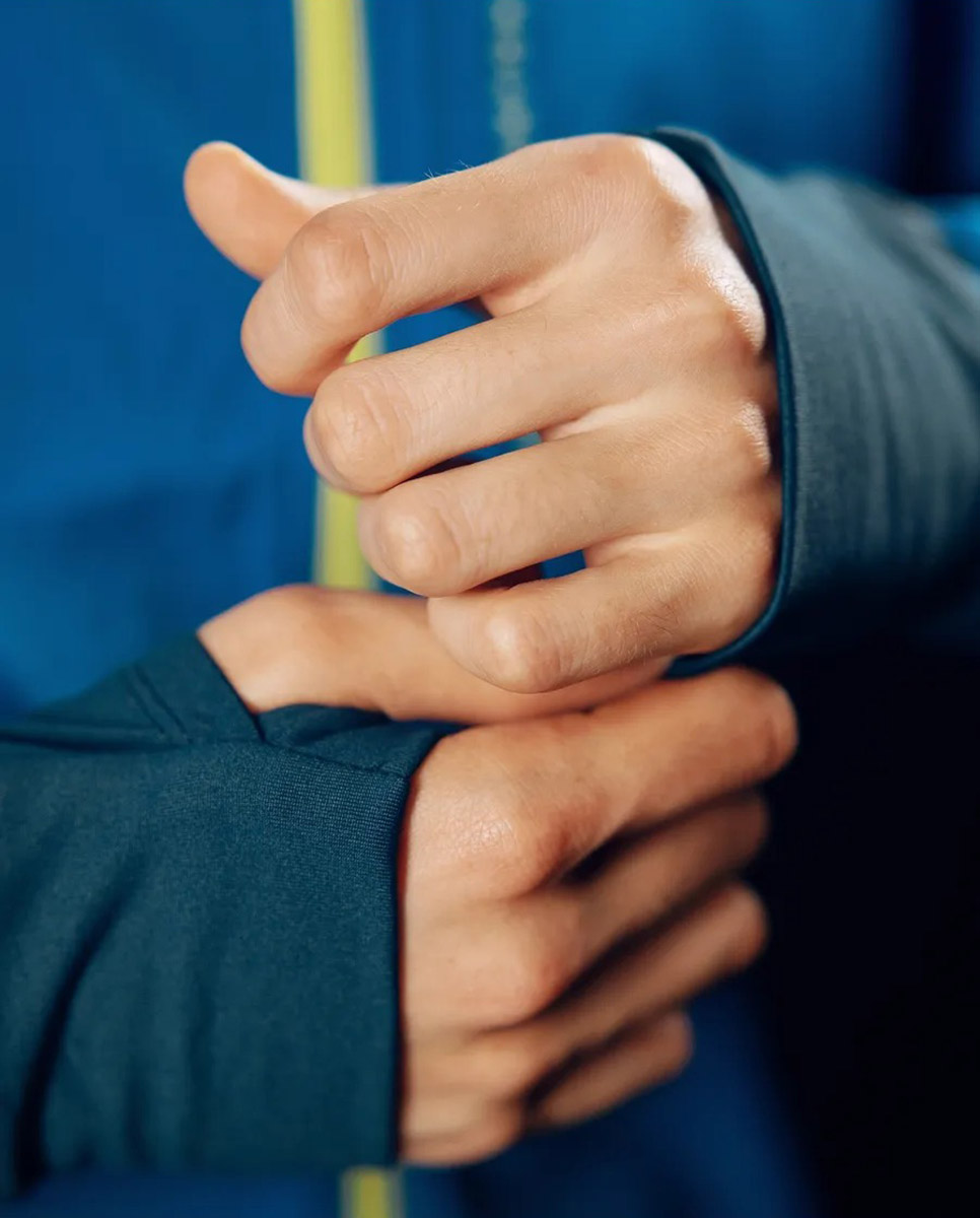 Капюшон, который можно спрятать в воротнике, позволяет адаптировать куртку к погодным условиям, а длинная застежка-молния обеспечивает легкий доступ и вентиляцию. Вентиляция в подмышечных впадинах помогает сохранить комфортную температуру тела во время активного движения. С тремя карманами на молнии — один на груди и два снаружи — у вас будет достаточно места для хранения мелочей.
