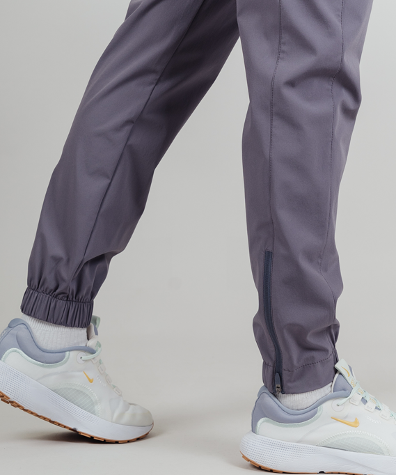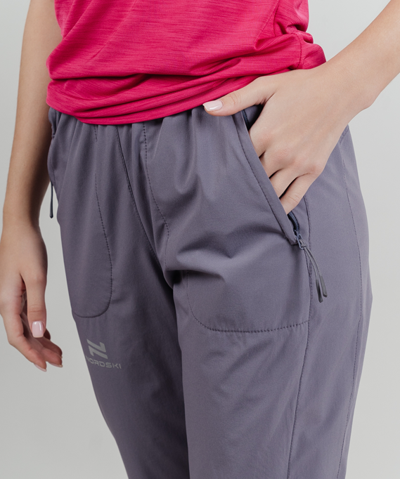 Модель выполнена из мягкого, «дышащего» материала, тянется в четыре стороны. Закрытый пояс – резинка со шнурком, для комфортной посадки на талии. Два боковых кармана застегиваются на молнию, что обеспечит сохранность вещей. По низу брюк широкая резинка и молния по бокам.