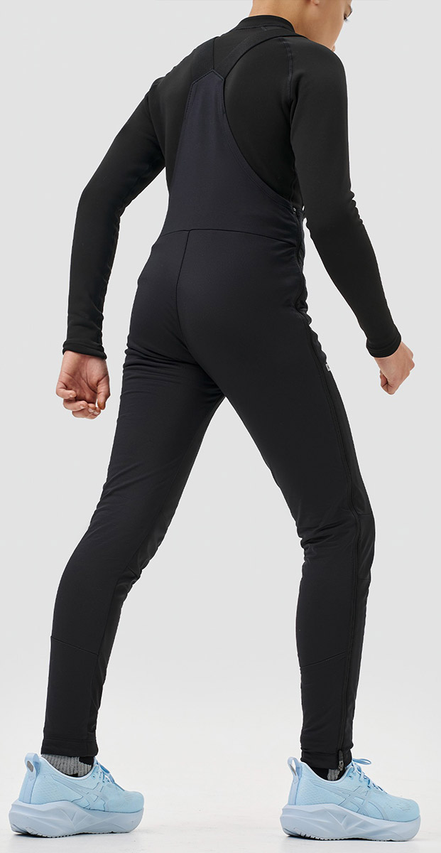 Передняя часть брюк выполнена из мягкого микрофлиса, который эффективно сохраняет тепло, а задняя - из влагоотводящего бифлекса, обеспечивающего отличную вентиляцию и быстрый отвод влаги. Регулируемые бретели и высокая спинка гарантируют надёжную фиксацию на теле и дополнительную защиту от холода. Анатомический крой в области колен не сковывает движения, позволяя полностью сосредоточиться на тренировке.