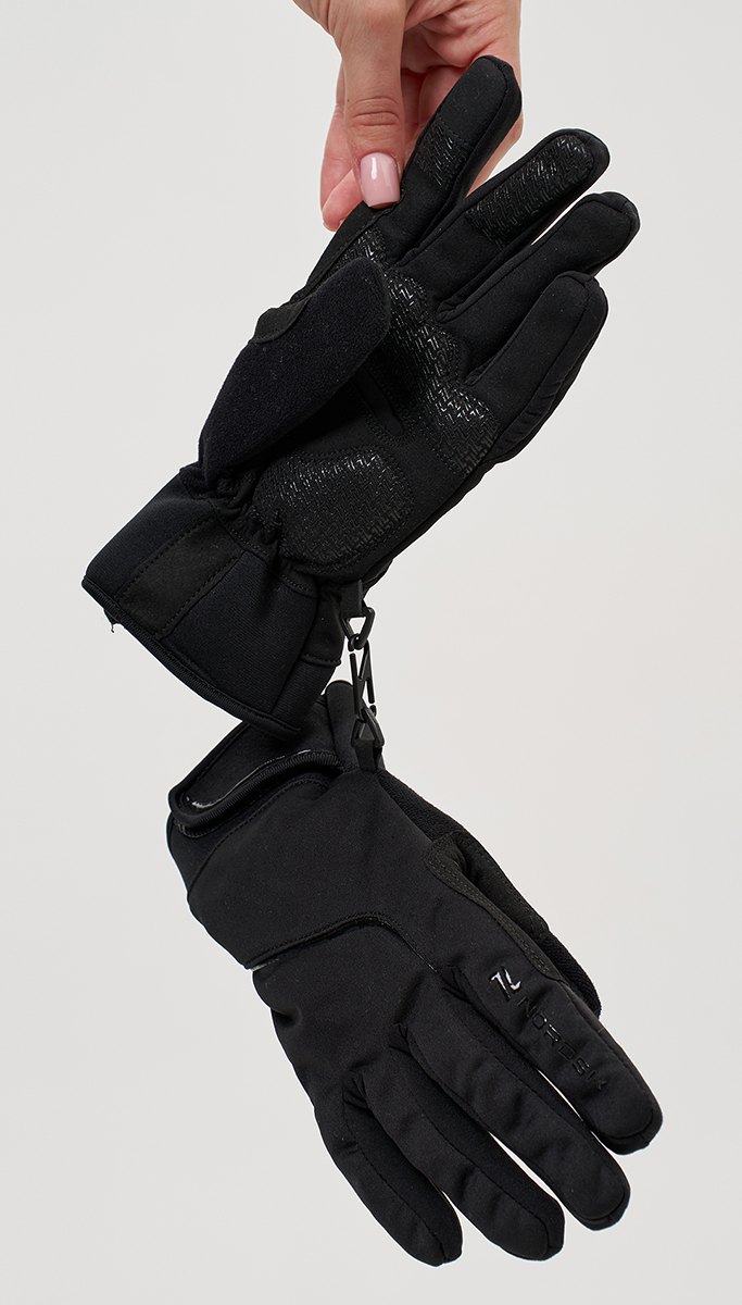 Плотное прилегание к руке гарантирует застёжка‑липучка на запястье: она позволяет отрегулировать посадку и препятствует попаданию холодного воздуха и снега внутрь.
