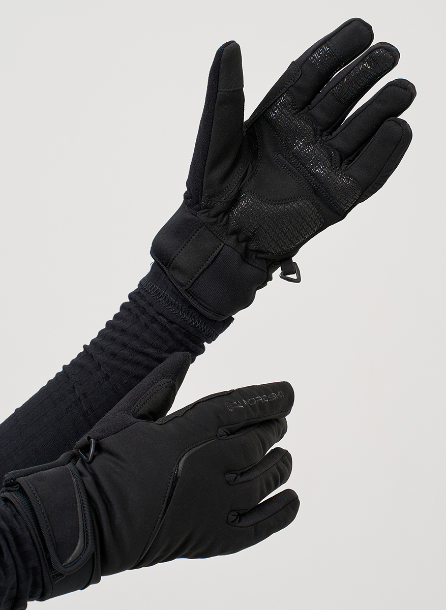 Перчатки оснащены мембраной с показателями 5000/5000, что обеспечивает хорошую защиту от влаги и ветра, а пропитка WR дополнительно отталкивает воду. Внутренняя подкладка из микрофлиса создаёт приятное ощущение тепла и уюта, эффективно отводит влагу и сохраняет руки сухими. Для безопасности в тёмное время суток предусмотрены светоотражающие элементы.