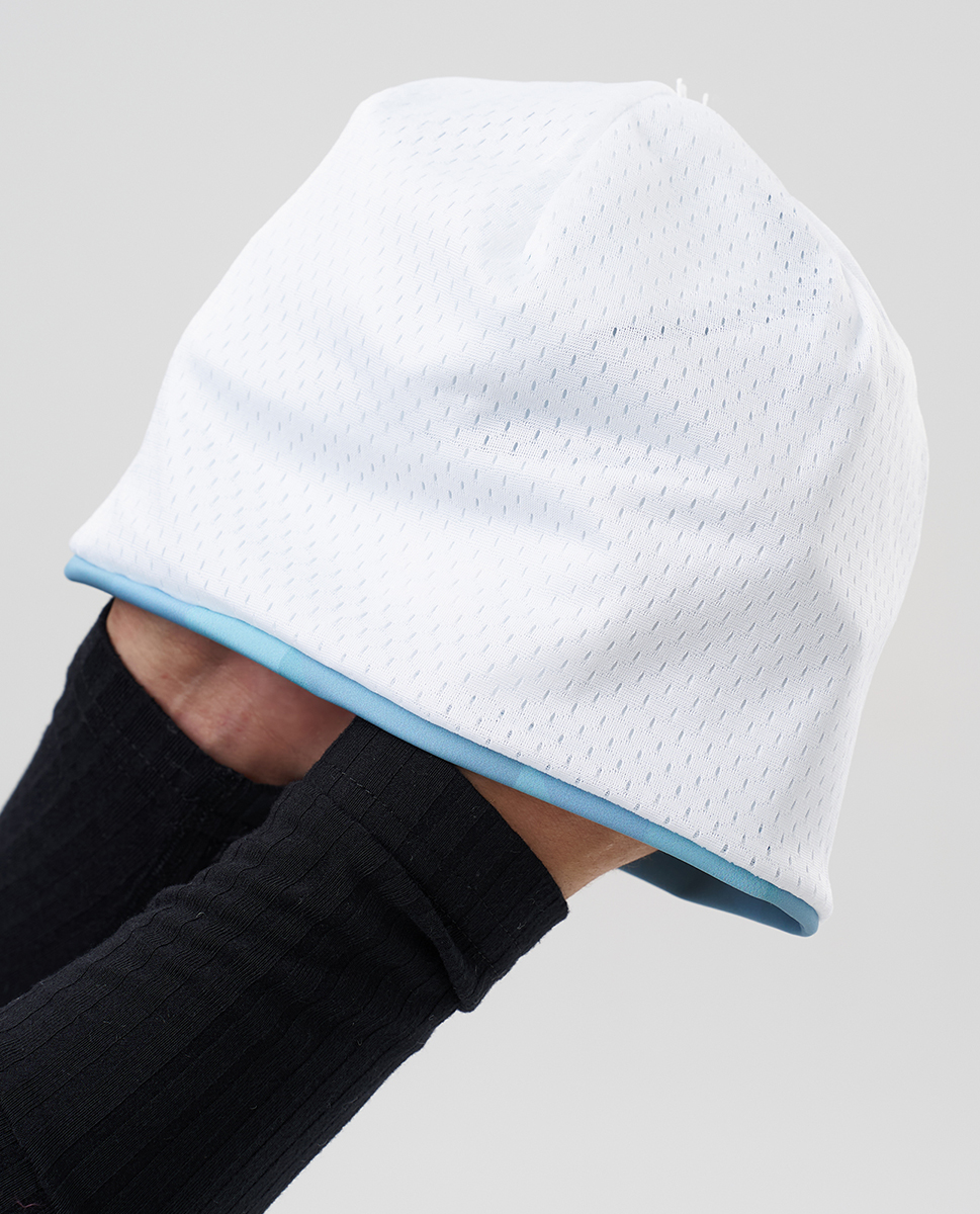 Материал шапки сочетает в себе прочность, эластичность и приятные тактильные свойства. Он эффективно отводит влагу, устойчив к растяжению и деформации, а также рассчитан на длительную эксплуатацию. Специальный крой обеспечивает плотное облегание головы - шапка практически не ощущается во время носки. Дополнительным преимуществом является дышащая сетчатая подкладка из особого материала: она активно отводит влагу от тела, благодаря чему голова остаётся сухой.