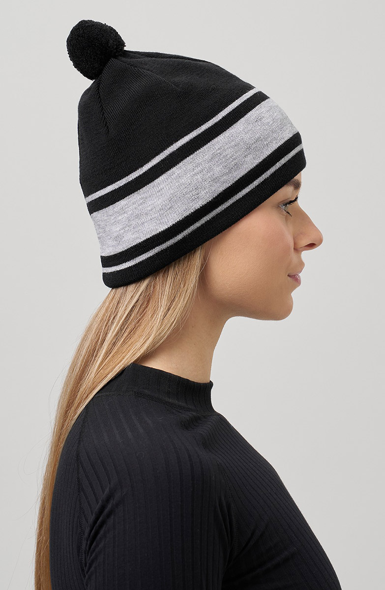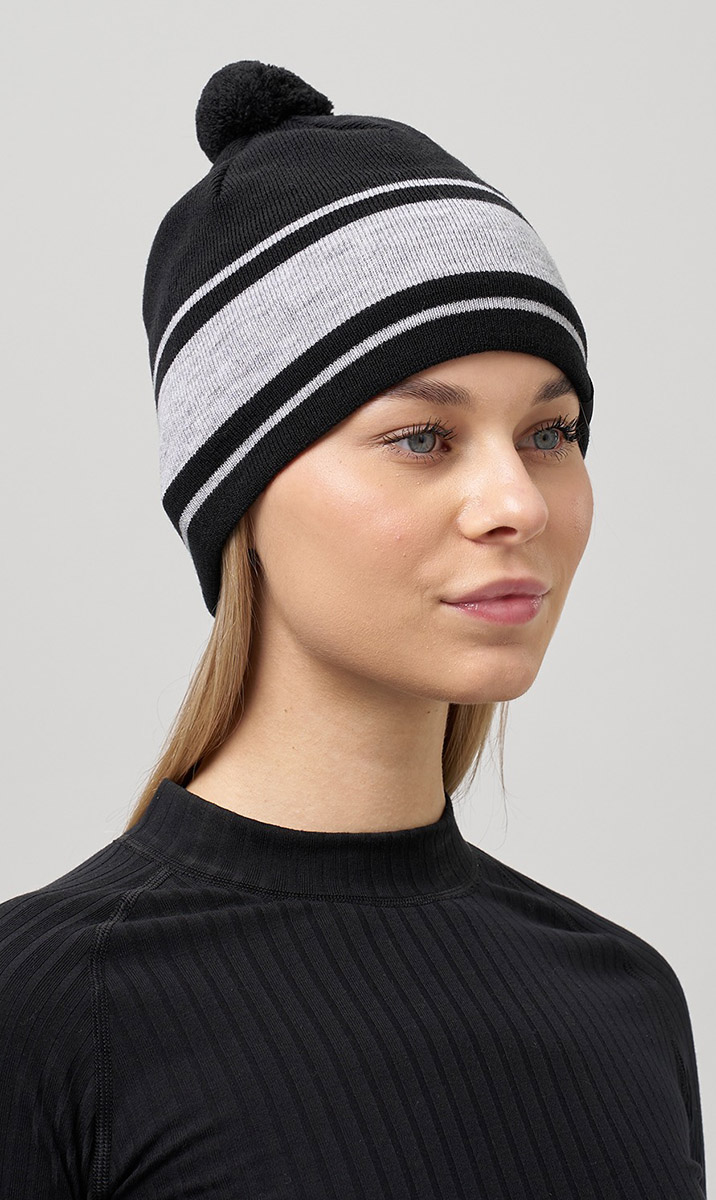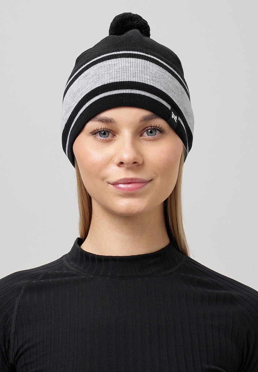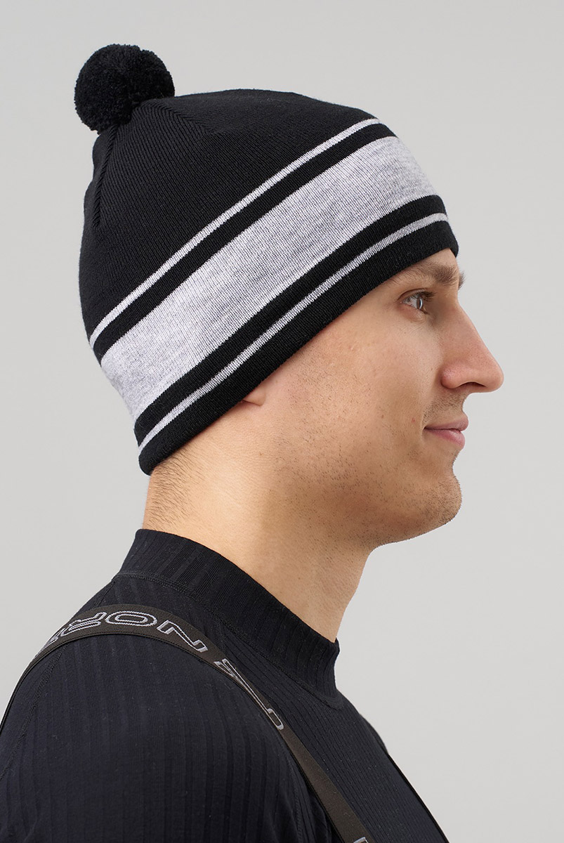 Верхний слой изделия выполнен из материала с добавлением шерсти, который эффективно сохраняет тепло. В нижней части предусмотрена мягкая флисовая подкладка - она создаёт дополнительный барьер от ветра и повышает уровень комфорта. Контрастный спортивный дизайн с полосатым узором придаёт шапке выразительный внешний вид, а стильный помпон и жаккардовый фирменный логотип подчёркивают принадлежность к бренду NORDSKI.