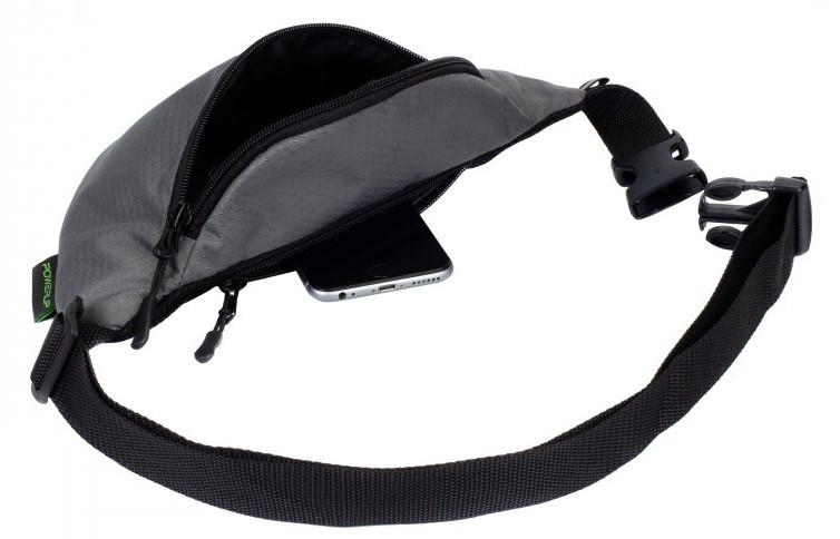 Поясная сумка имеет два отдела. Достаточно большой отдел для всевозможных мелочей, спортивного питания, но при этом может вместить легкую ветровку, которая может пригодиться в дождливую погоду.