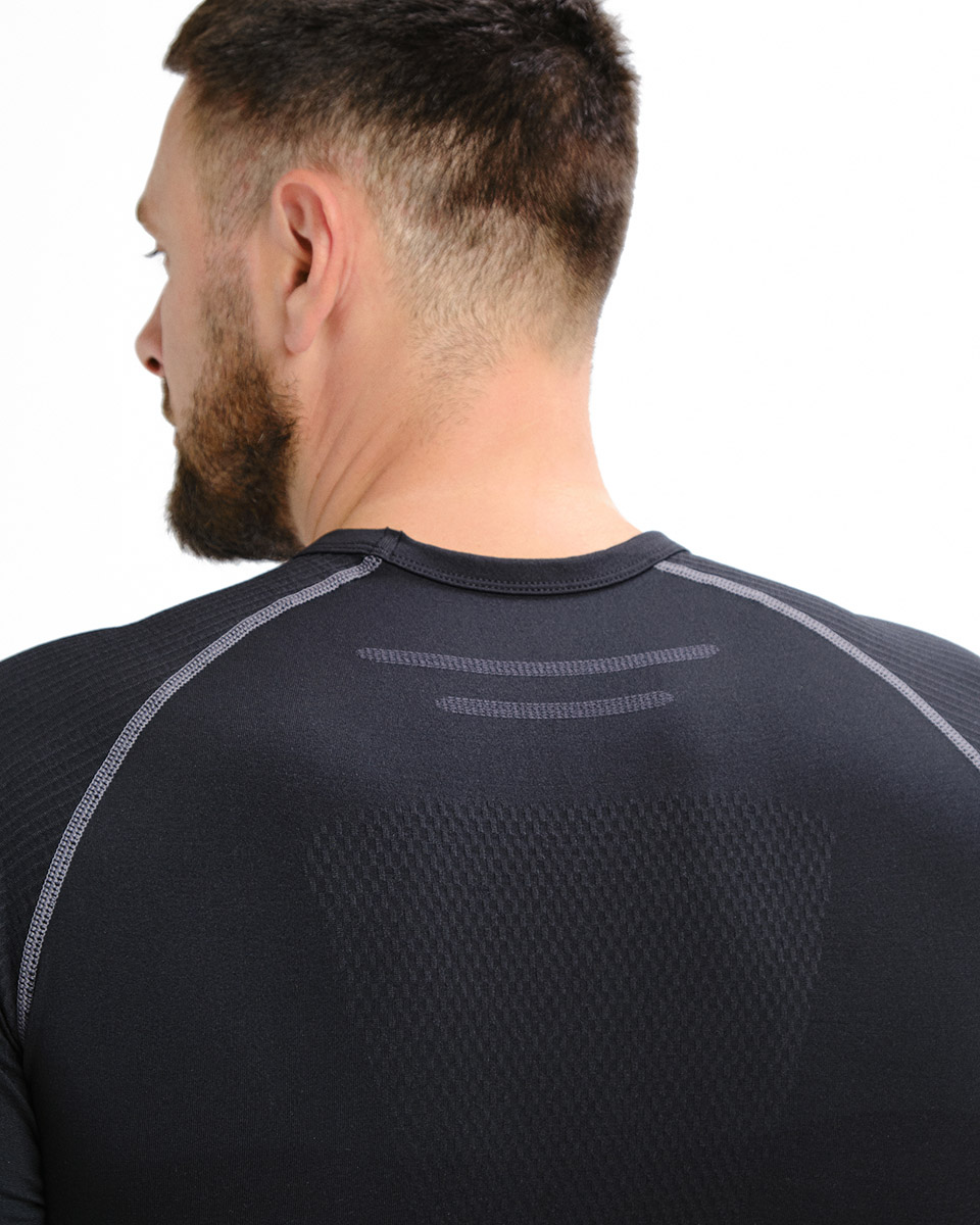 Мужской комплект функционального спортивного термобелья выполнен из быстросохнущего дышащего эластичного материала, который содержит бамбуковый уголь для быстрого впитывания влаги и поглощения неприятных запахов. Термобелье регулирует теплообмен и сохраняет оптимальную температуру тела при повышенных нагрузках. Имеет эластичные плоские швы и анатомическую форму, плотно прилегающую посадку. Плотная, но дышащая, структура материала создает идеальный микроклимат. Дополнительные вставки с сетчатой структурой способствуют более быстрому отведению влаги от тела. Термобелье - незаменимый элемент экипировки для профессиональных спортсменов, спортсменов-любителей и людей, ведущих активный образ жизни. Оно служит утеплителем для тренировок на беговых лыжах, горных лыжах, сноуборде, коньках, для беговых тренировок, игровых видов спорта, дальних пеших прогулок и т.д. Оптимальная температура использования от 0°С до -20°С