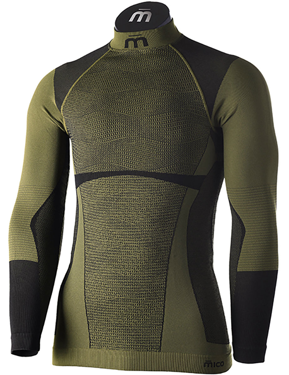 Премиальная тёплая Терморубашка Mico Warm Control Skintech Olive с воротом для холодной погоды мужская подойдет для: