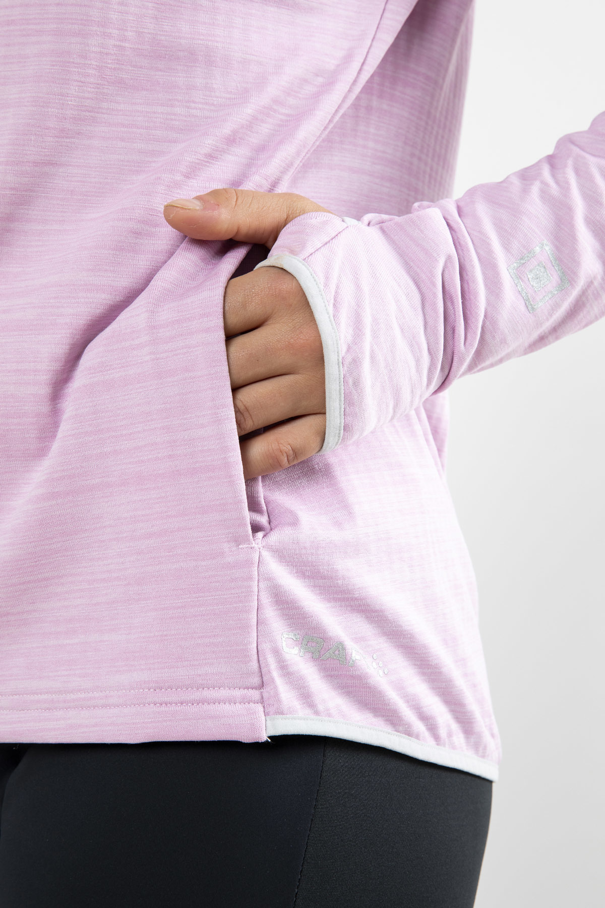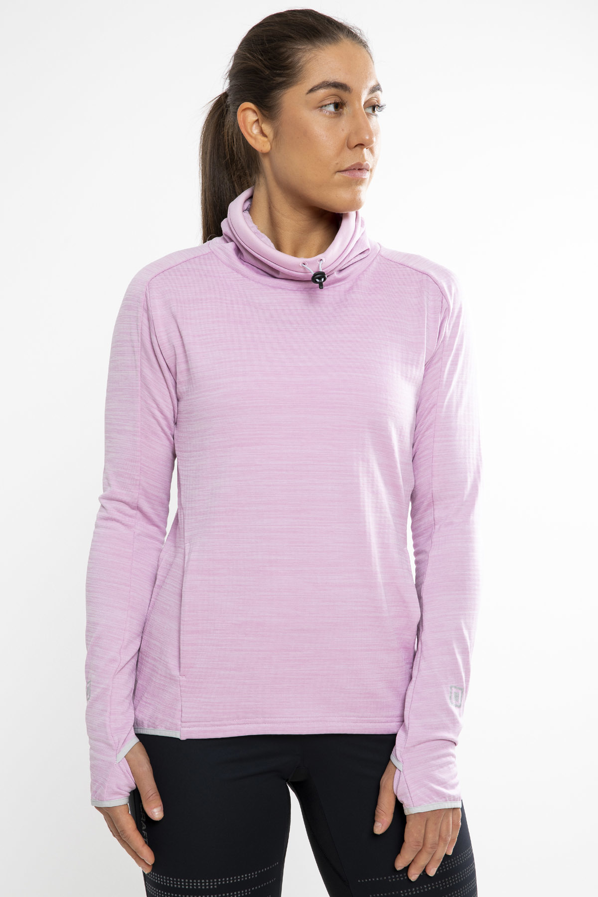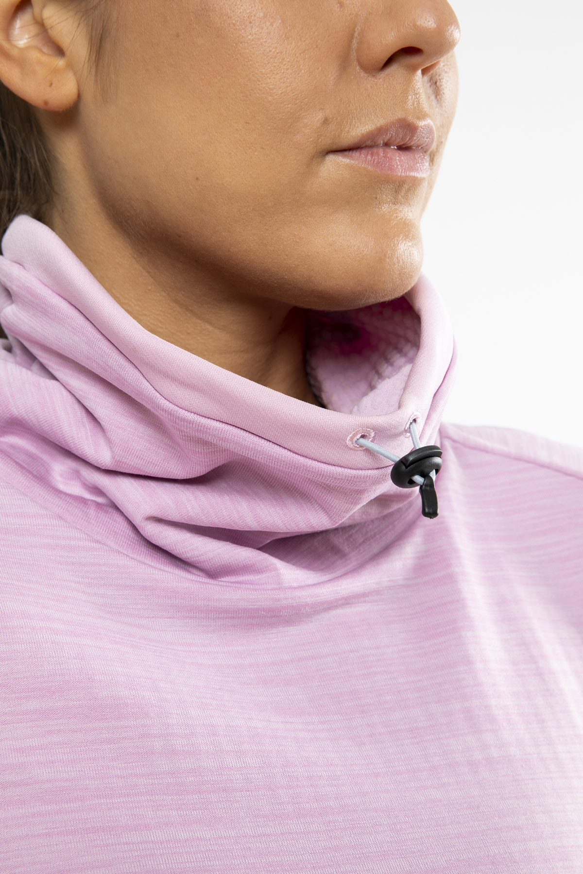Стильная современная толстовка, которая отлично подходит как для тренировок, так и для повседневного использования. Выполнена из функциональной ткани приятного нежно-розового цвета. Внутри ткань структурная, что обеспечивает дополнительное тепло и ускоряет отвод влаги от тела. Высокий воротик регулируется затяжкой, это не "воротоник-стойка", в Grid воротник мягкий, как у водолазок. Рукава удлинены, внизу есть прорези для больших пальцев. Крой спинки также удлиненный, спереди есть карман-кенгуру. Подходит для тренировок средней и низкой интенсивности.