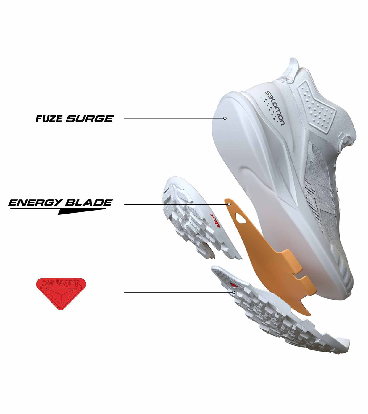 Energy Blade - Легкая пластина из термопластичного полиуретана, встроенная в межподошву, работает в связке с мягкой и пружинистой межподошвой для обеспечения плавного, динамичного шага.